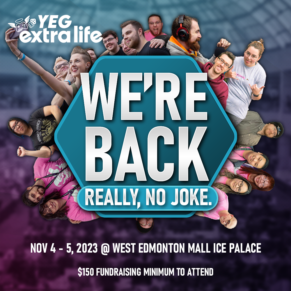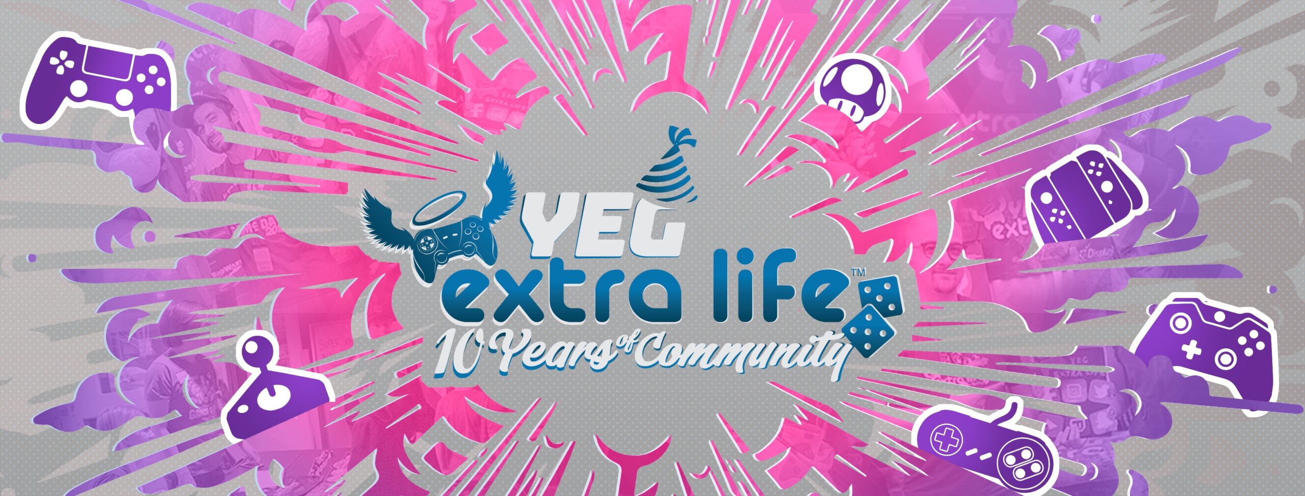 I do a lot of graphic design for Extra Life Edmonton, a local videogame-centric charity that raises money for the Stollery Children’s Hospital Foundation. It’s a cause that’s near and dear to my heart, and over the years I’ve developed quite a few assets; the core brand identity featured on social media pages, social media posts, physical banners and pamphlets, t-shirts, etc.
